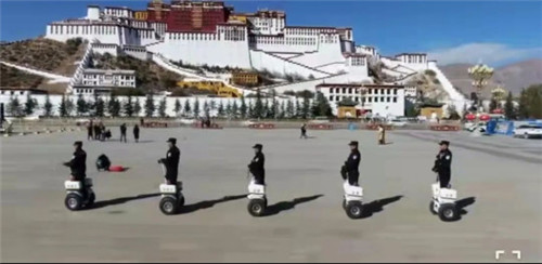 為了保證旅行者在布達(dá)拉宮出行安心、舒心、放心,拉薩市公安局城管分局廣場派出所成立2個(gè)巡邏隊(duì),增設(shè)2個(gè)值守點(diǎn),全天候不斷開展巡邏防范,每天陪伴民警的就是躍迪警用平衡車。