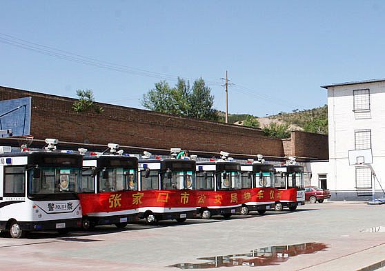 移動警務室張家口市宣化分局執(zhí)勤現場 2012年5月5日河北新宇宙電動車有限公司研發(fā)生產的躍迪牌移動警務室發(fā)往張家口市宣化分局,圖為張家口市宣化分局執(zhí)勤現場。