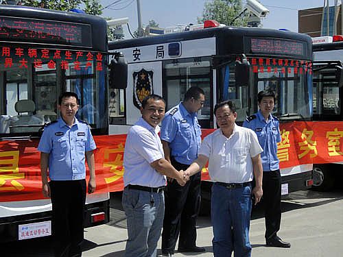 移動警務室再次發(fā)往張家口市公安局 躍迪移動警務室張家口市公安局接車儀式 移動警務室張家口市公安局接車儀式 2012年5月31日 6輛由河北新宇宙電動車研發(fā)生產的躍迪牌移動警務室再次發(fā)往張家口市公安局。圖為躍迪移動警務室張家口..