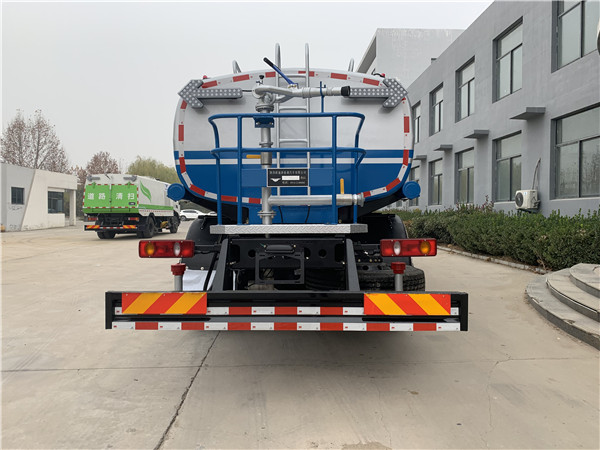 整車具有路面灑水、路面沖洗、噴霧降塵、澆花等多種功能。躍迪灑水車罐體后帶工作平臺,平臺上安裝綠化灑水炮,灑水炮可全方位旋轉(zhuǎn),可連續(xù)調(diào)成直沖狀、大雨、小雨、毛毛雨,帶安全護(hù)欄。