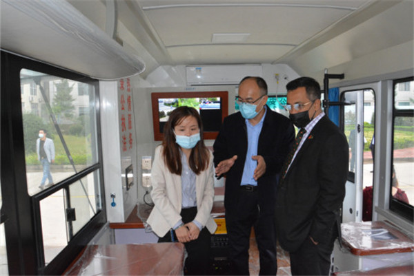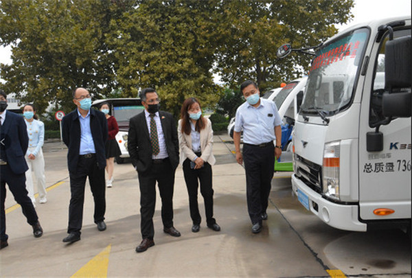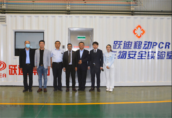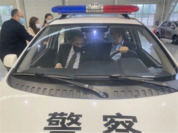 劉明??偛孟蚣{祖明公使一行介紹了河北躍迪新能源集團(tuán)五大生產(chǎn)基地,隨后參觀了四大工藝生產(chǎn)車間,詳細(xì)了解了機(jī)器人焊接生產(chǎn)線的情況,參觀過程中納祖明公使登上核酸檢測方艙了解方艙功能并試駕了躍迪新能源汽車。