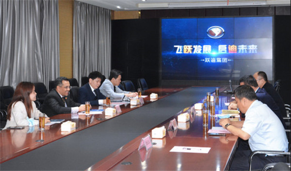 參觀完畢,雙方一起在集團(tuán)會議室進(jìn)行了座談,納祖明公使一行人對躍迪集團(tuán)發(fā)展新能源汽車的實力表示了肯定。同時高度贊揚(yáng)了躍迪集團(tuán)在新能源汽車行業(yè)的發(fā)展成果,并表示對合作前景充滿期待。